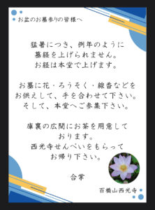 猛暑に伴う、お盆のお墓参りについて